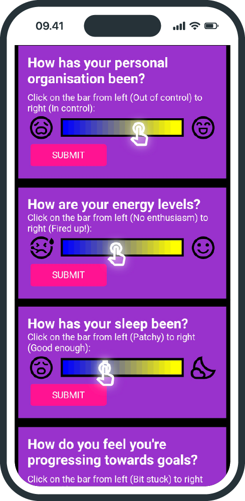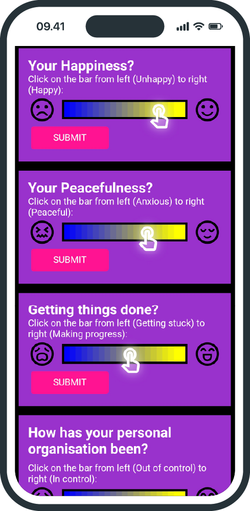 It’s not therapy – you do that bit. Mindful Friihday is a simple engagement survey, designed to gently encourage people into reflection. It’s a way for you to engage with clients between booked sessions.